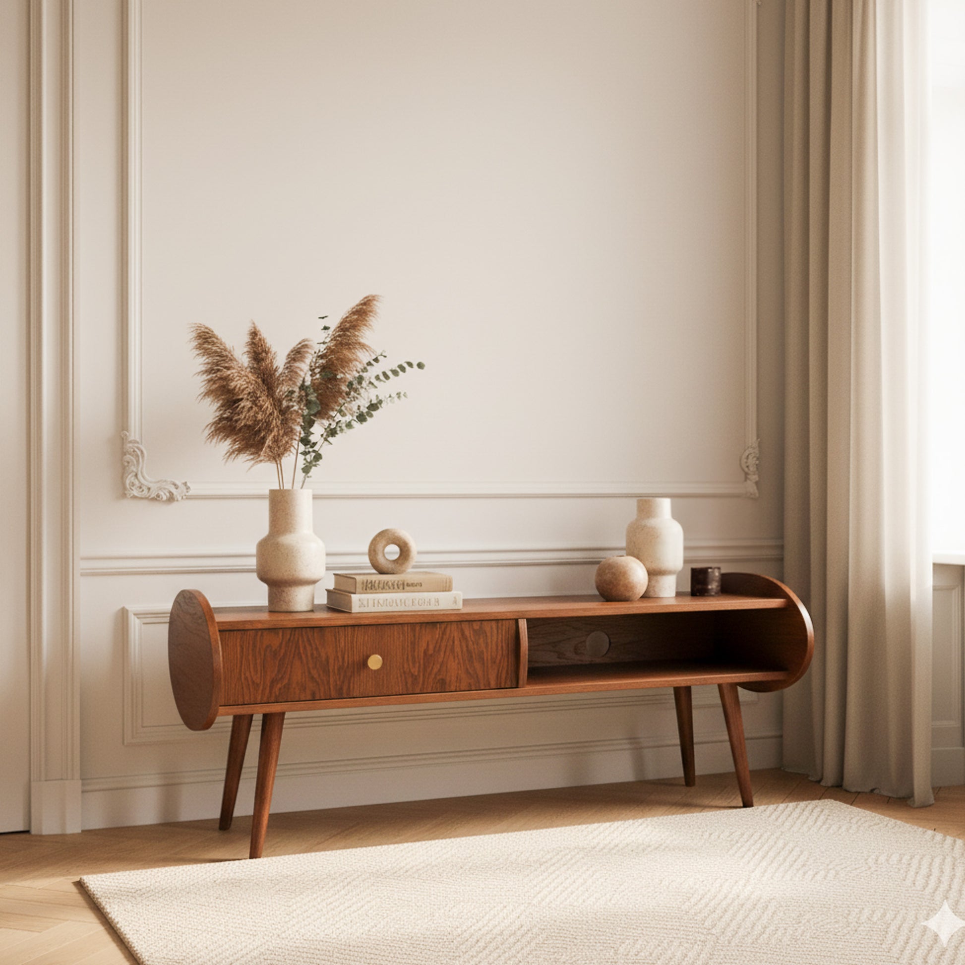 Discover the BONAM Cabinet—a piece that beautifully blends classic lines with refined, vintage-inspired detailing, harmonizing the spirit of the past with a modern twist. Combining functionality with expressive design, BONAM is perfect as a media console but also shines as a low centerpiece for your interior. It introduces energy, elegance, and a touch of boldness into your home.
