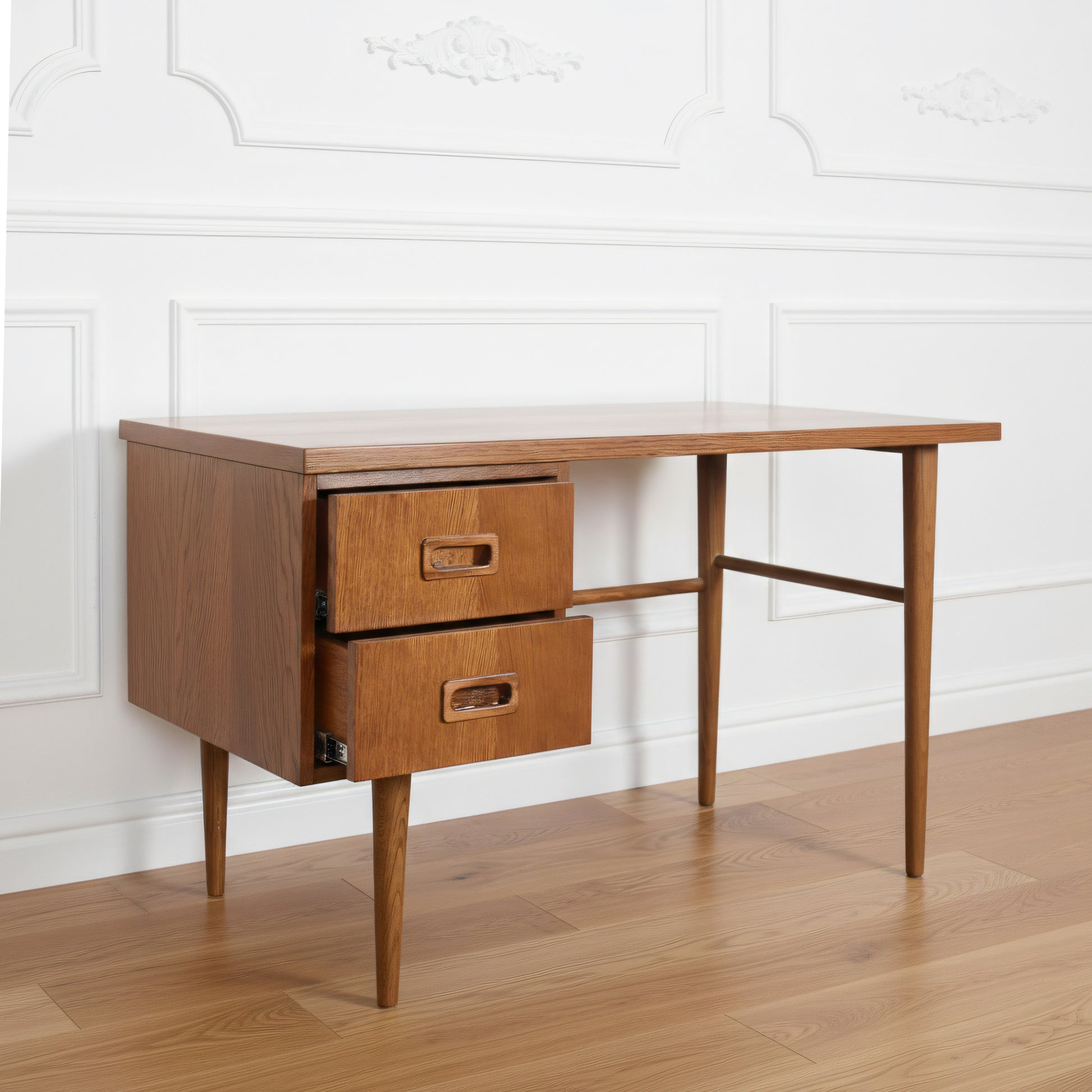 The PAST desk features a sturdy tabletop and two deep drawers to hold everything that matters. Its proportions are drawn from timeless classics, yet it’s ready for modern-day demands. A desk that sets the tone for focus and calm.